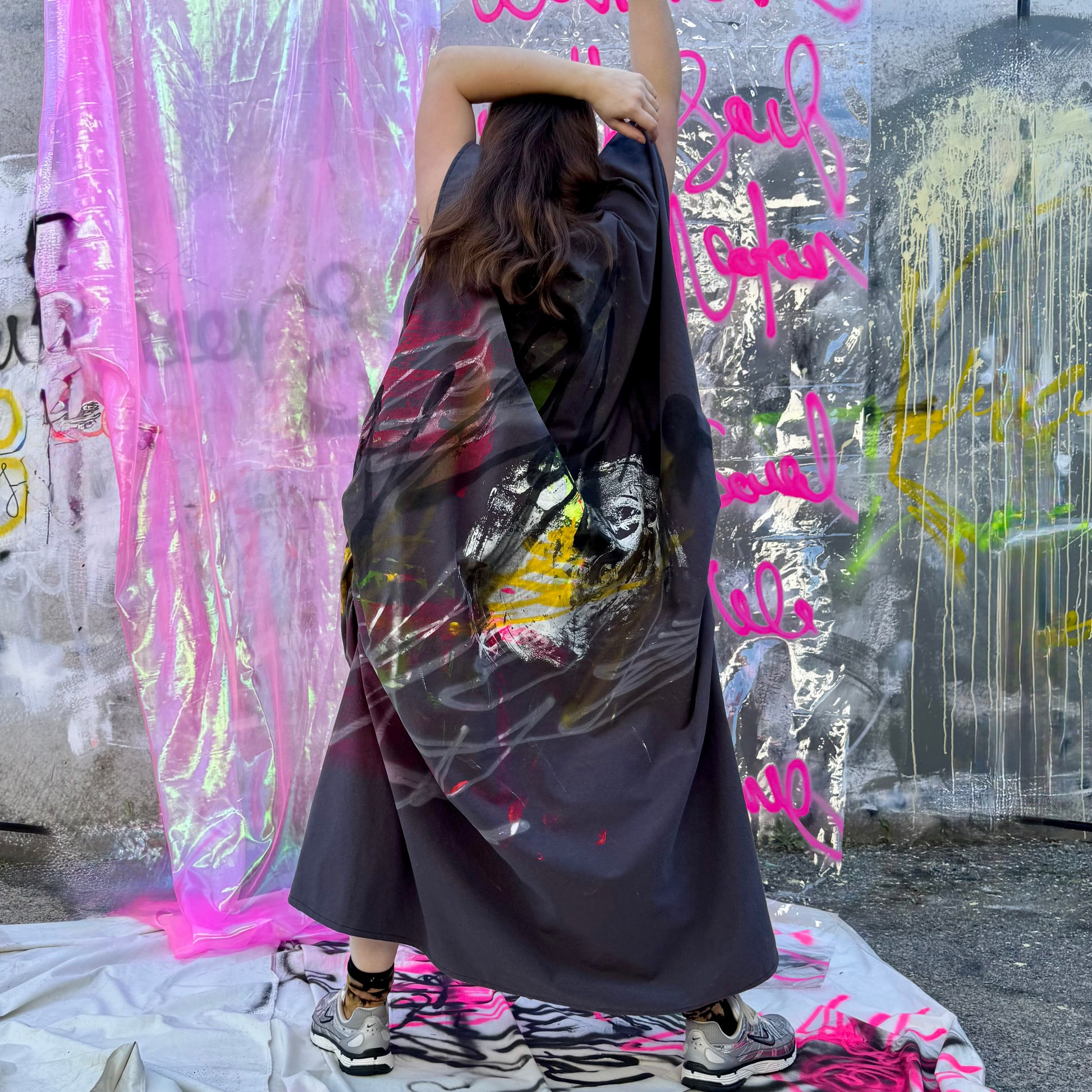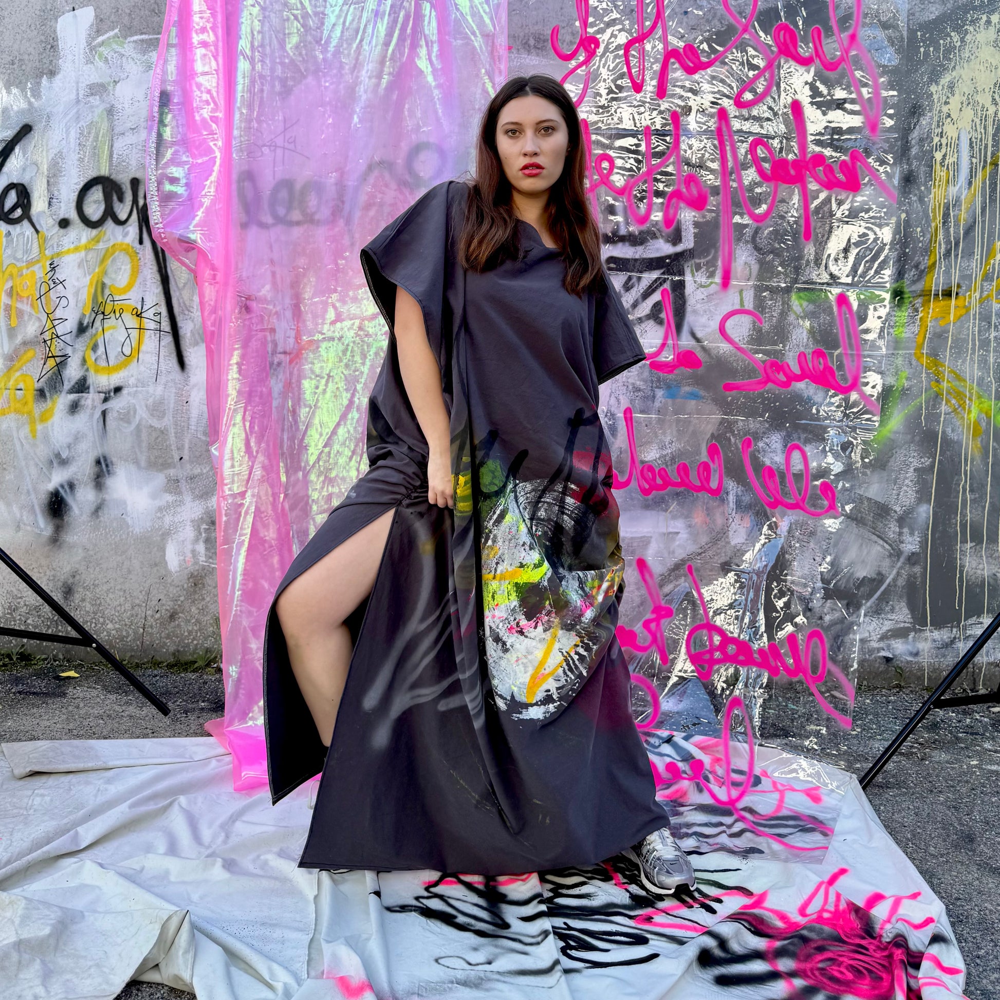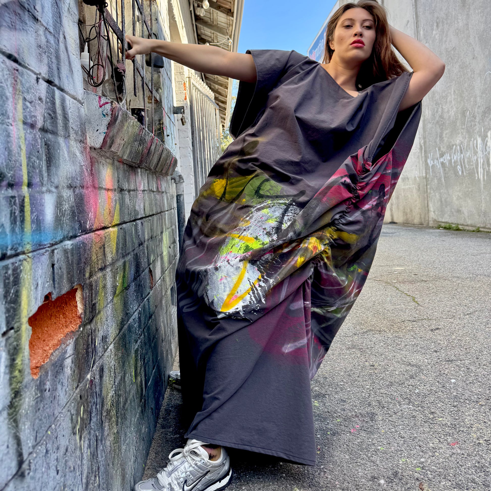 This collection is a true expression of wearable art - each dress is individually hand-painted and handmade, making every piece a one-of-a-kind AKA.ARTWEAR creation. Crafted from Japanese cotton, the fabric is soft, breathable and lightly structured for effortless everyday wear.
