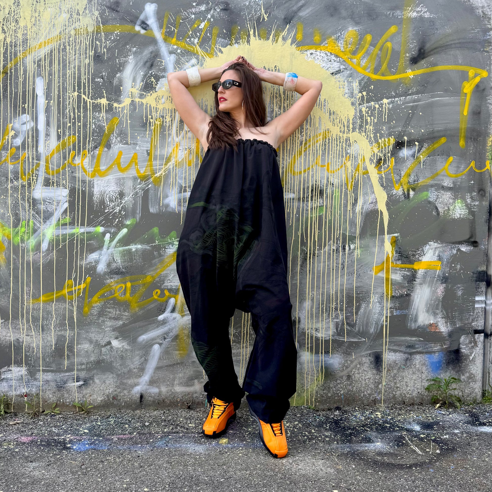 A timeless strapless jumpsuit, handmade and hand-painted for effortless elegance. Super fun, designed to make you feel incredible. Perfect for every occasion.