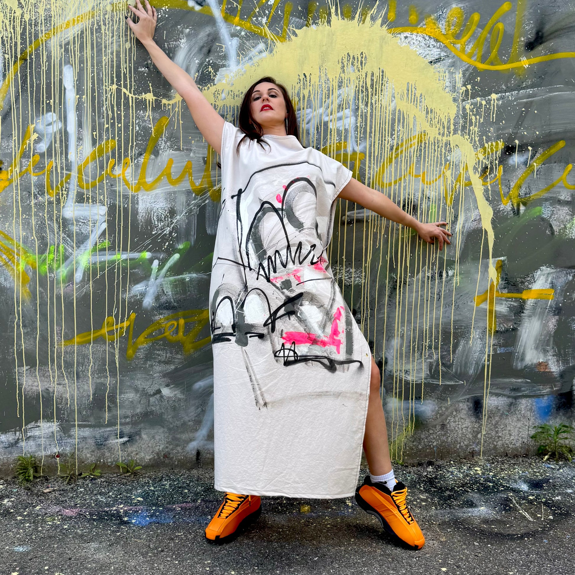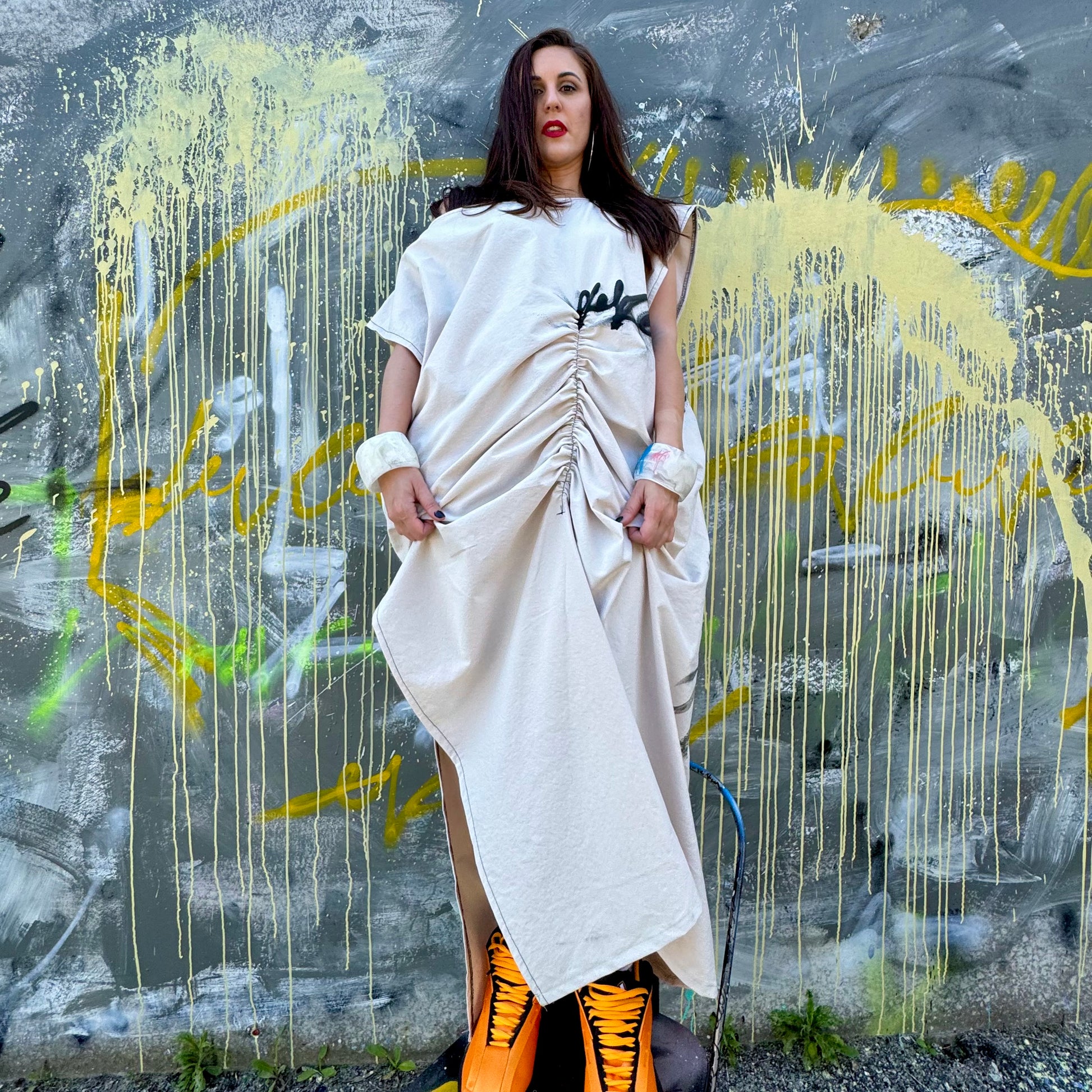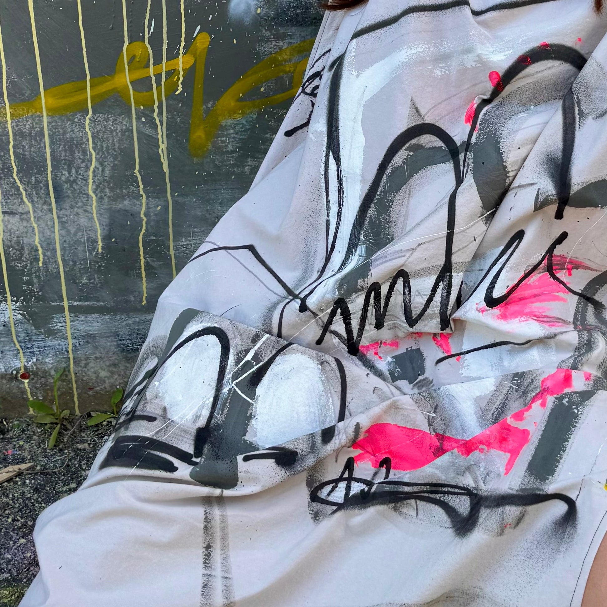 This collection is a true expression of wearable art - each dress is individually hand-painted and handmade, making every piece a one-of-a-kind AKA.ARTWEAR creation. Crafted from Japanese cotton, the fabric is soft, breathable and lightly structured for effortless everyday wear.