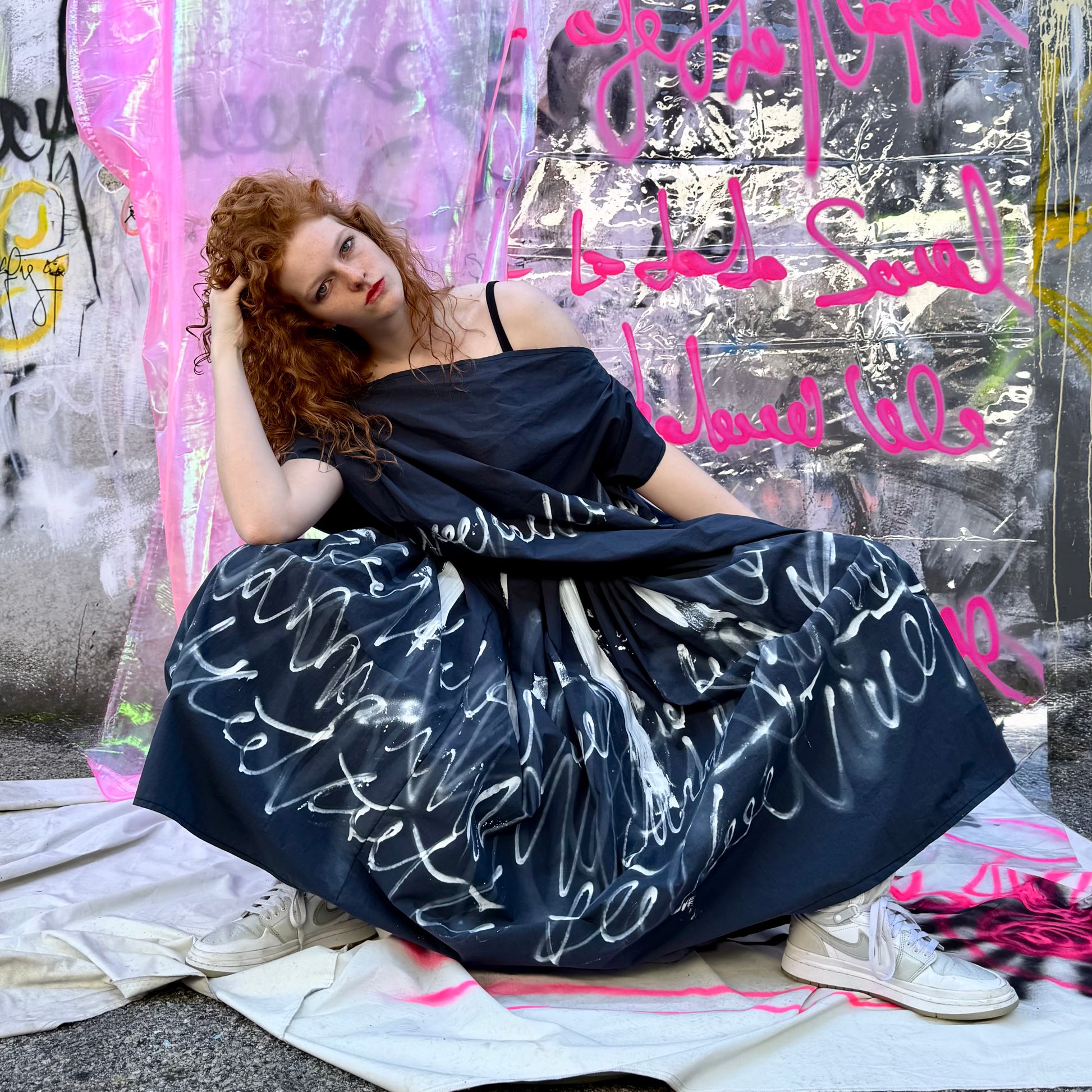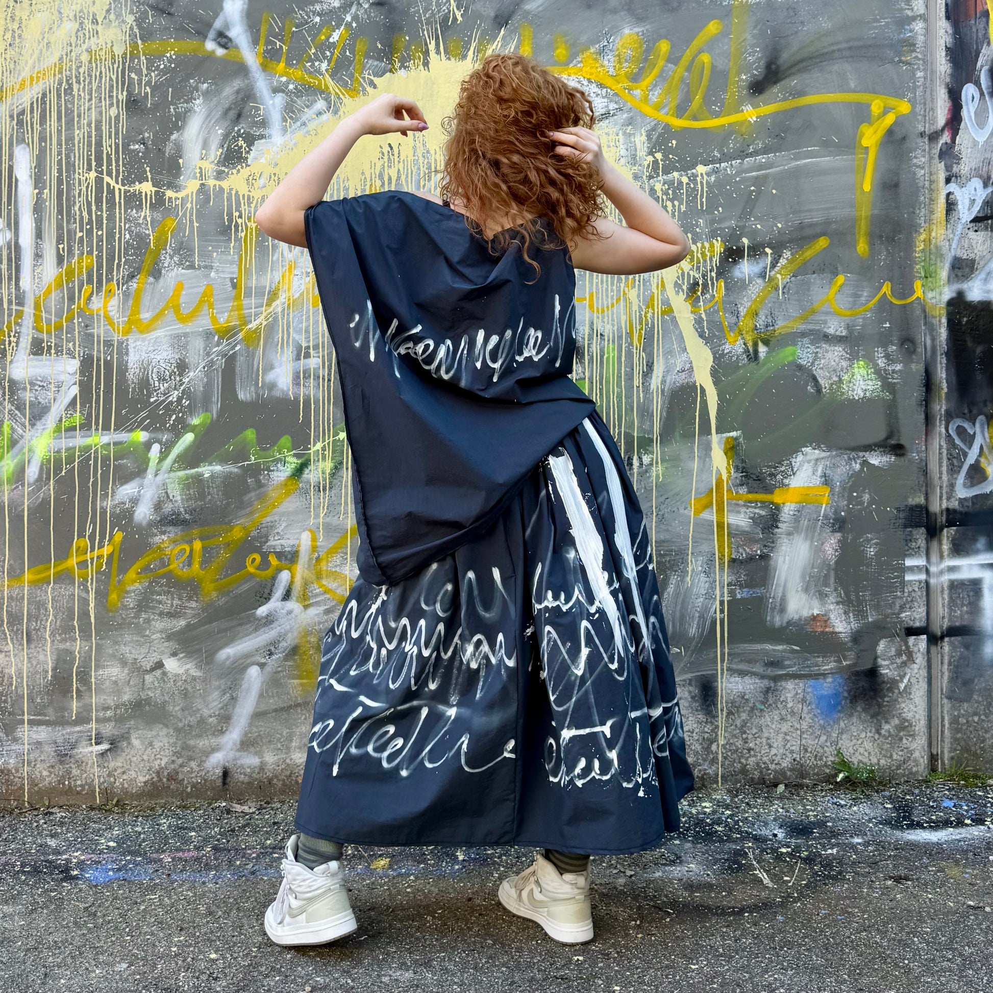 Skirt + Top - Happiness set - because I had so much painting the material and when I tried it on I was so pleased with myself. As you know I’m an organic artist, no planning I put the paint straight on the material and painted from the heart. I love the white paint.