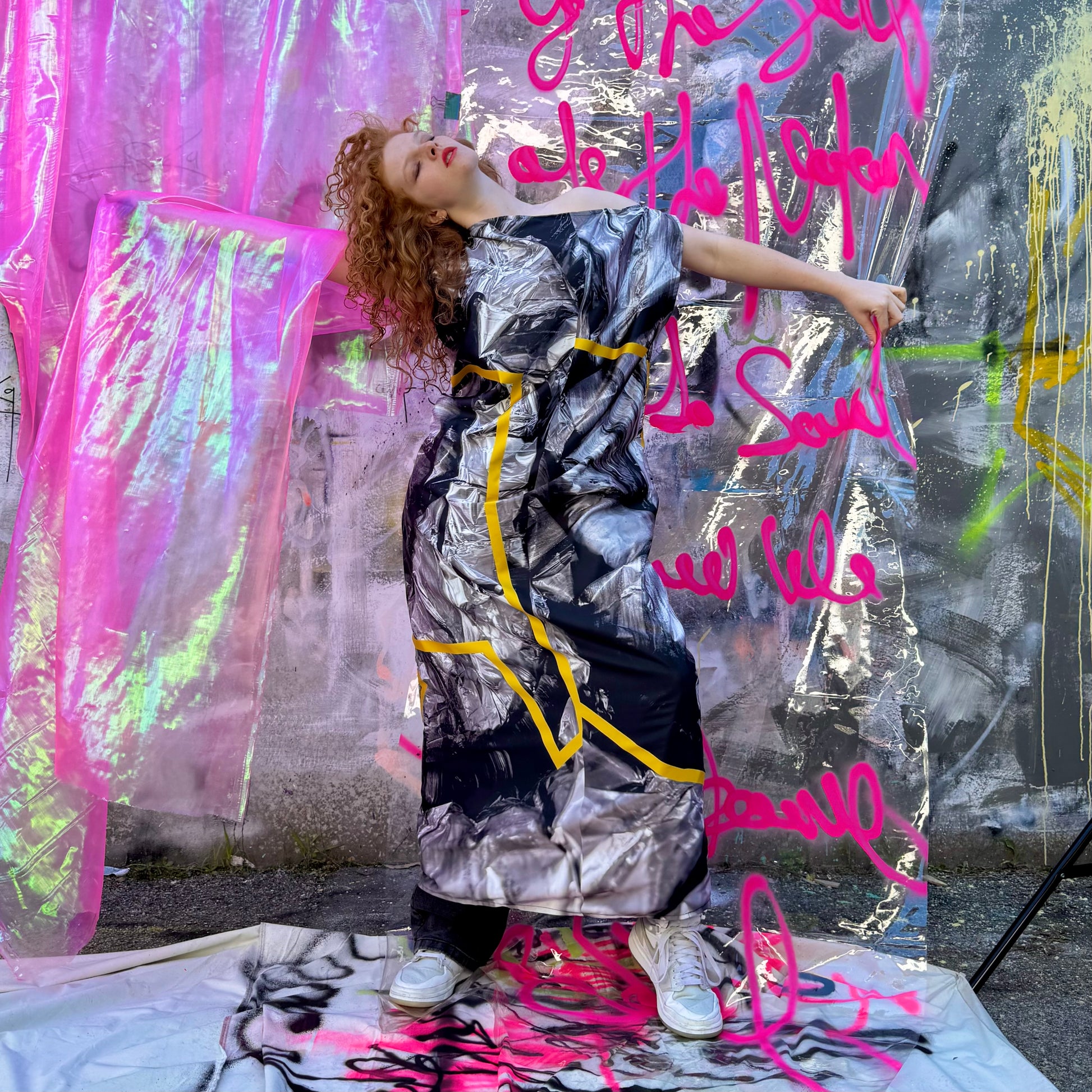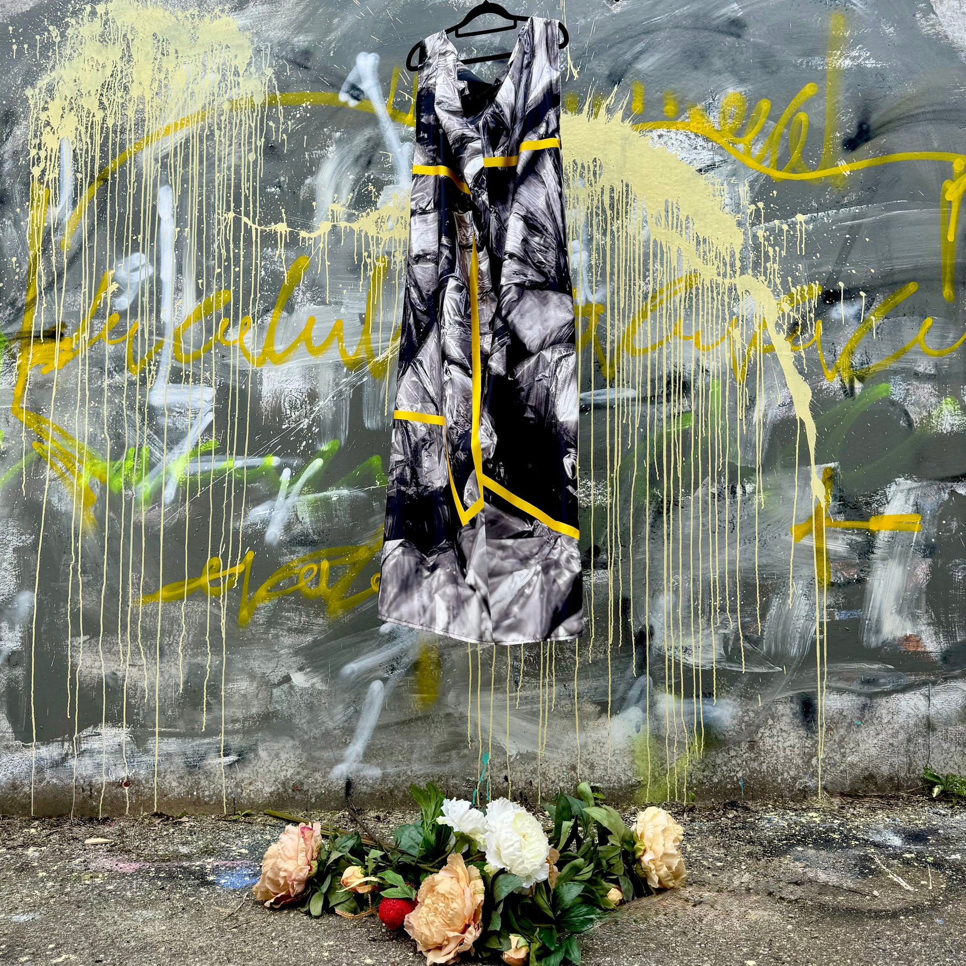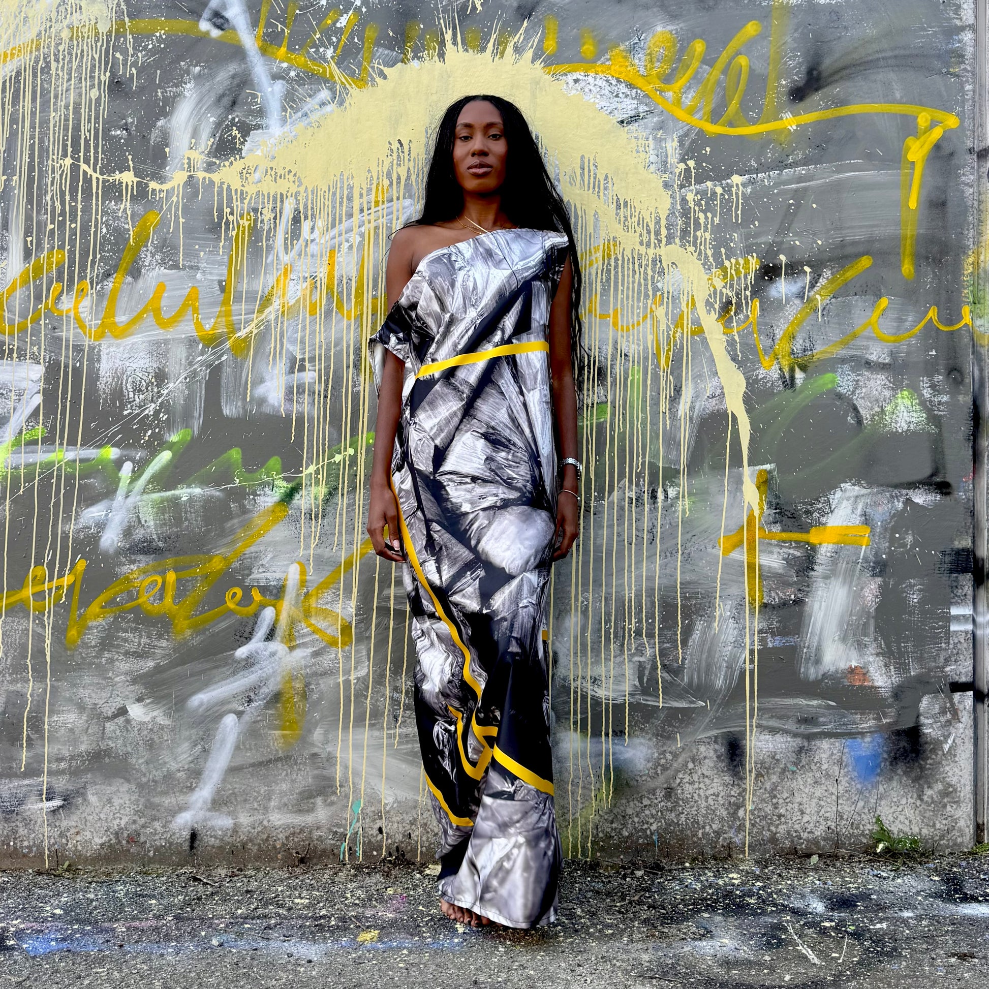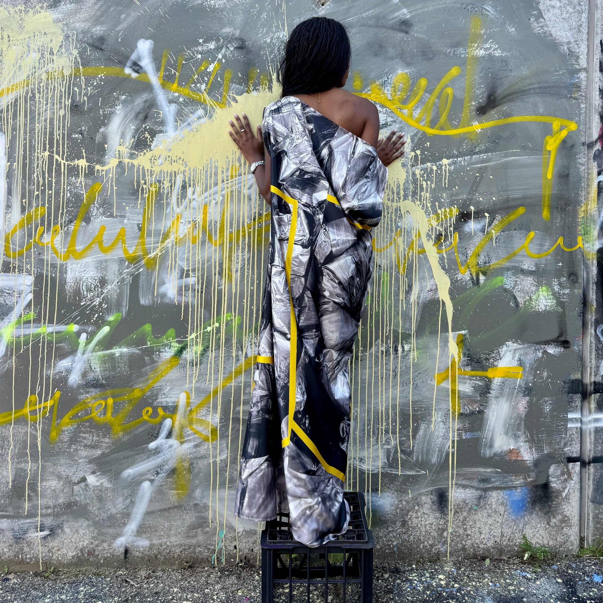 This design is from a photo I took of the inside of my air conditioning. I loved the silver and the texture. I redesigned it adding a super yellow abstract design to give it life. Very energetic and interesting. Don’t ask me what hours on in my head 🤣💥.