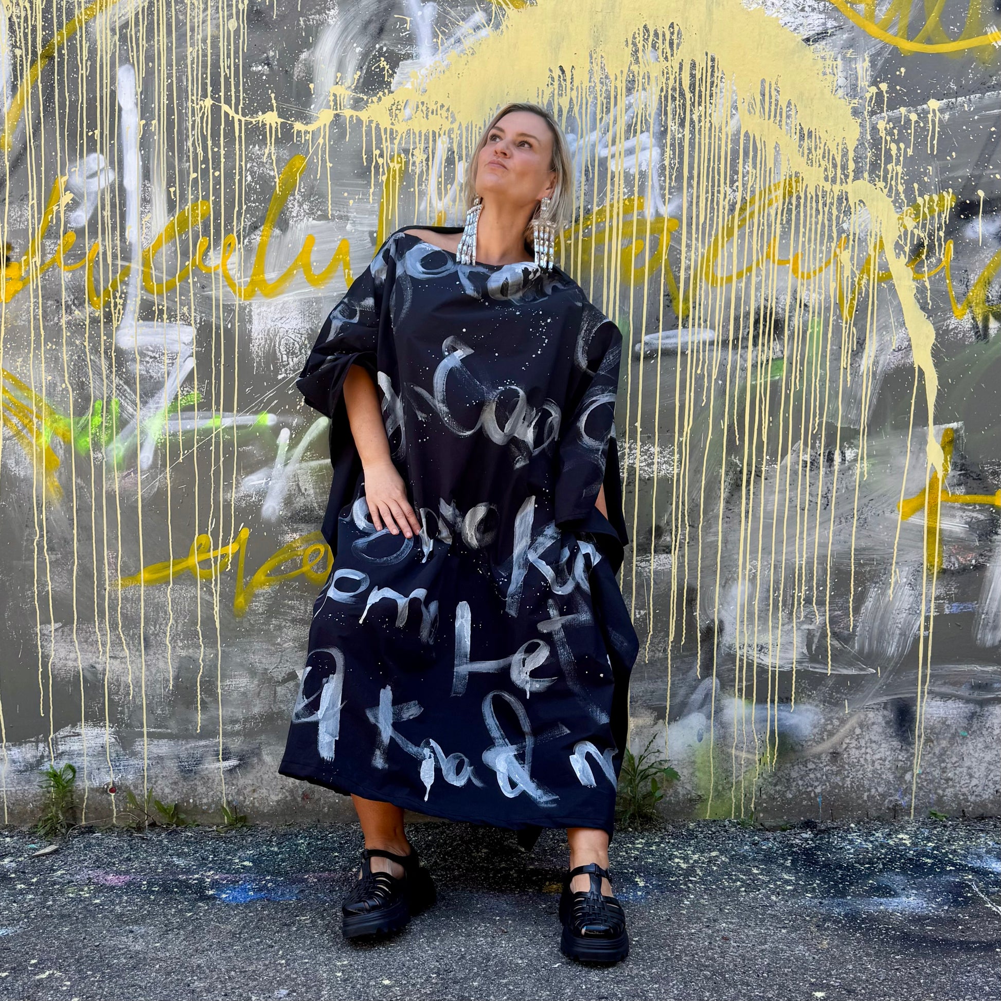 This beautiful light weight Japanese cotton / linen dress. The softest fabric with a little structure. Flowing and breathable. Handmade hand painted. Perfect for summer!