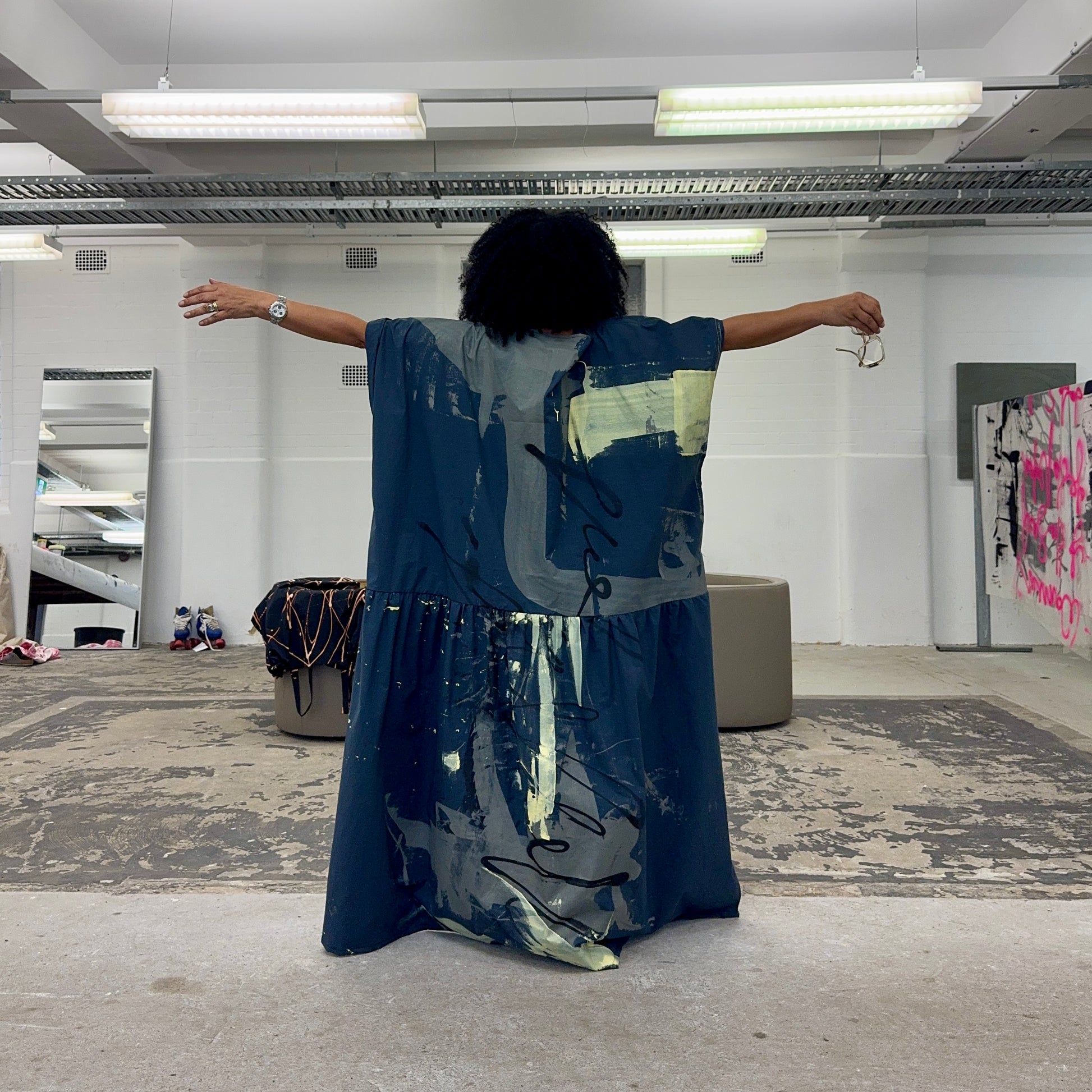 This collection is a true expression of wearable art - each dress is individually hand-painted and handmade, making every piece a one-of-a-kind AKA.ARTWEAR creation. Crafted from Japanese cotton, the fabric is soft, breathable and lightly structured for effortless everyday wear.