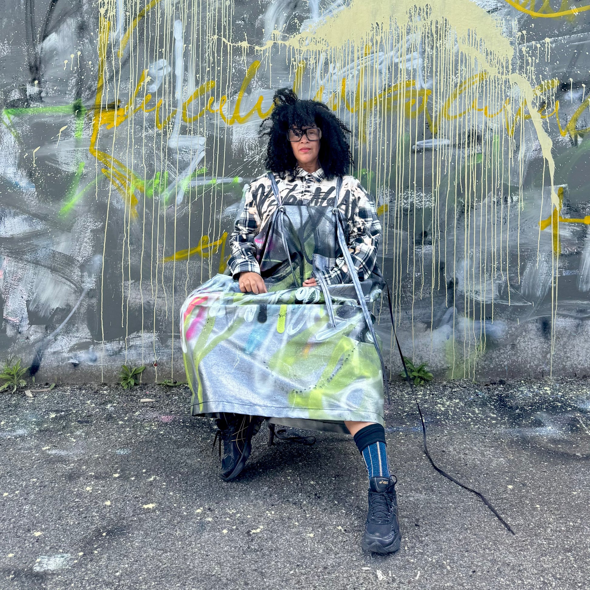 This piece was actually going to be in my next art exhibition but I decided it would look amazing as a dress. Fully adjustable at the shoulders and on the sides. Big over sized statement for every occasion 💥