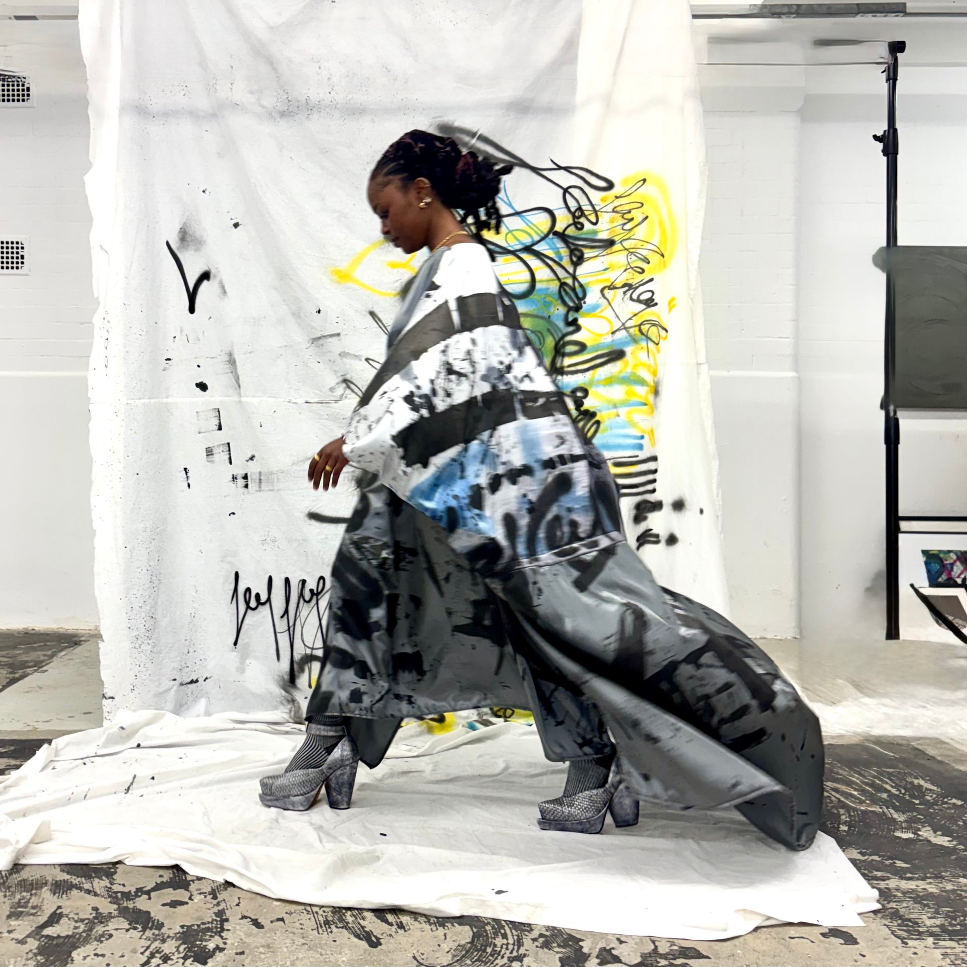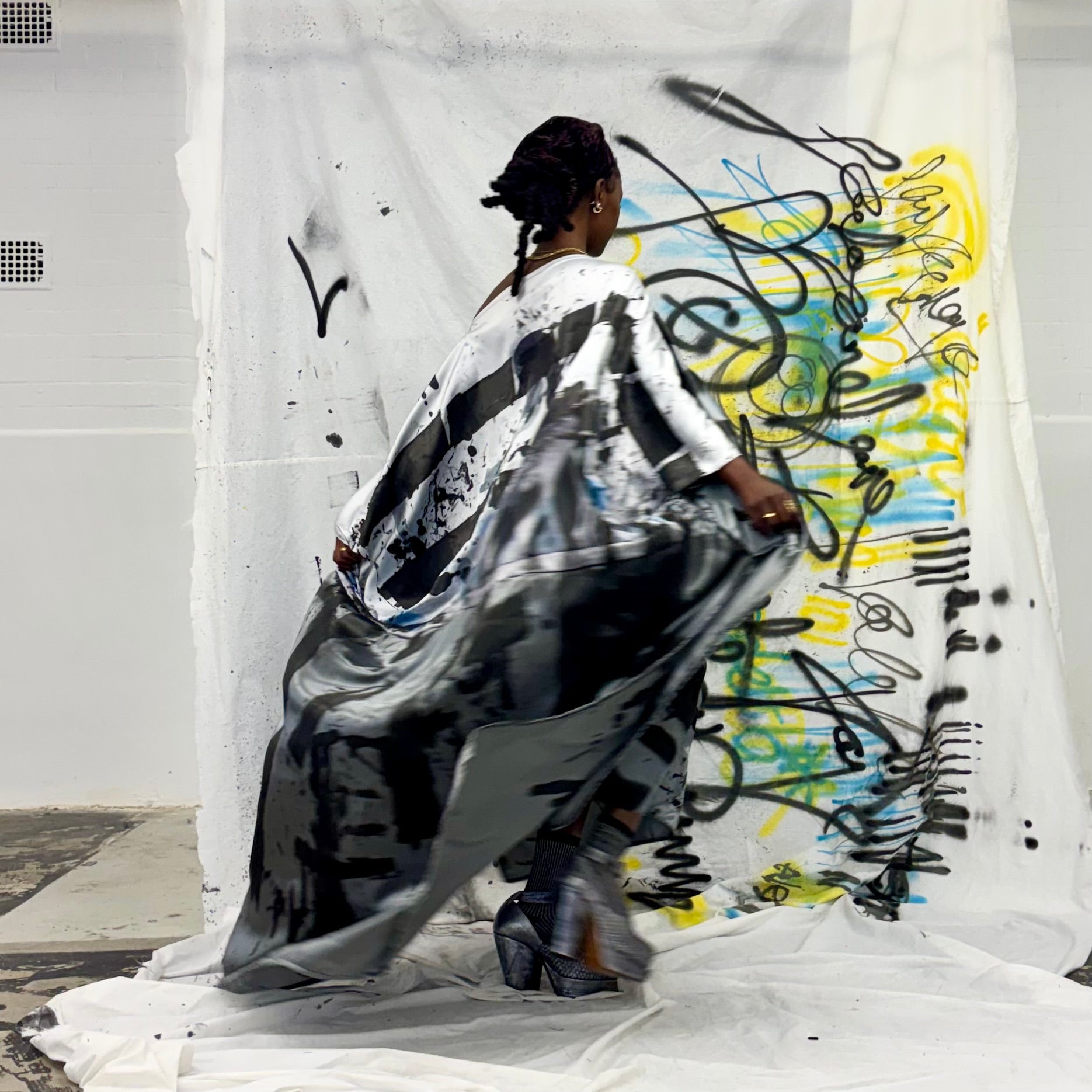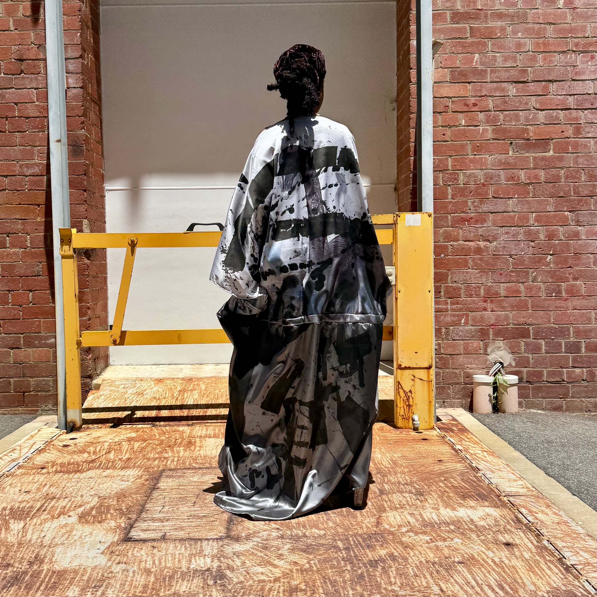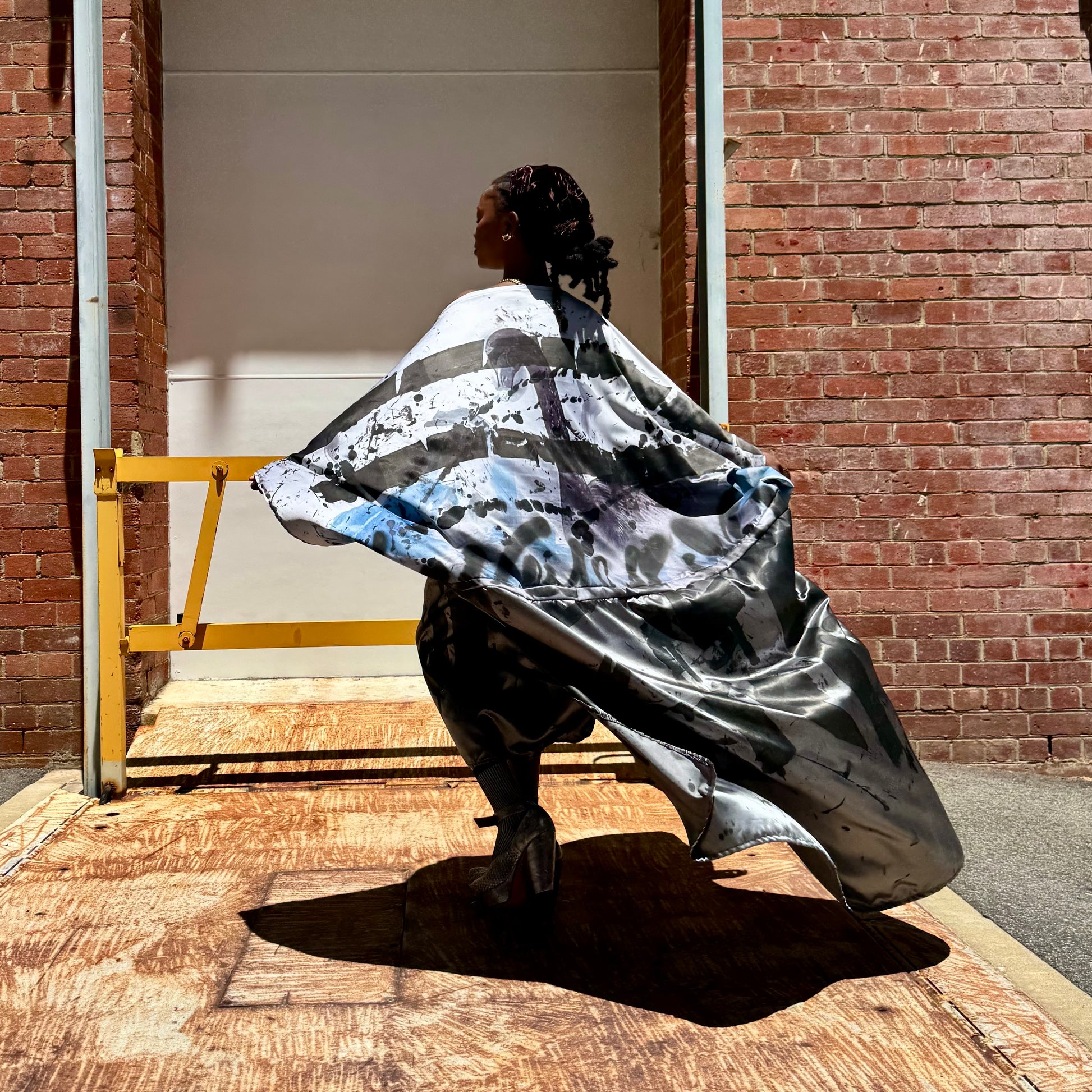 This double sided dress has a different image on either side of photos I took of a black swan in Perth. I then Hand painted it using traditional flower dying techniques - aerosol - ink- wearable art. A piece of art 🖤